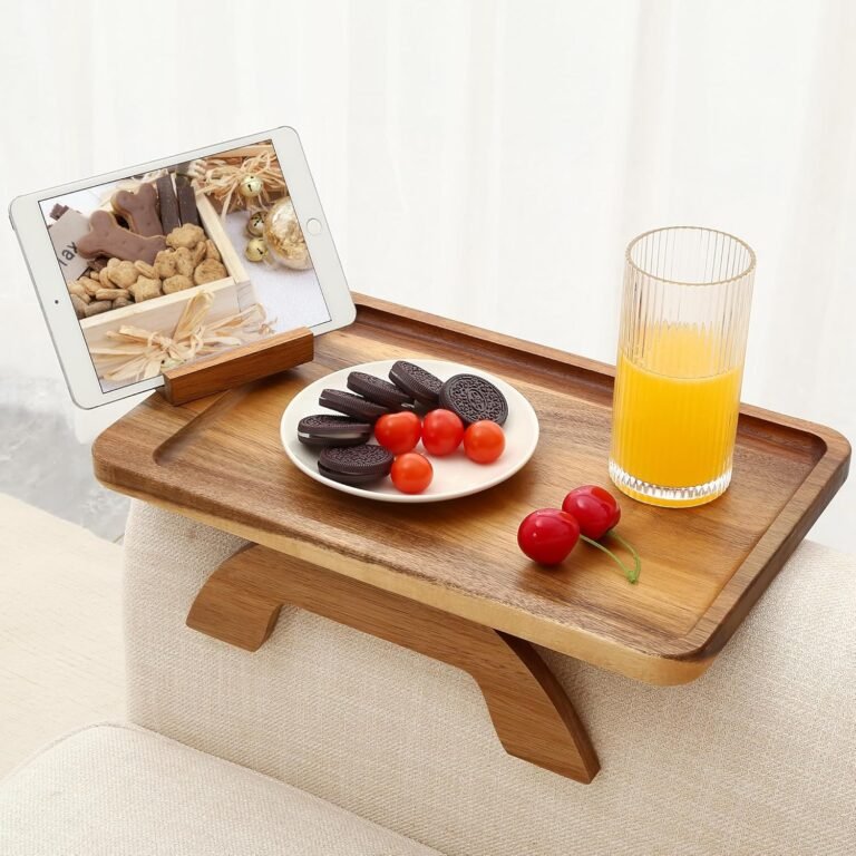 The SINWANT Bamboo Sofa Armrest Tray Table offers a clever, space-saving solution for small living rooms or apartments, turning your couch armrest into a convenient snack, drink, or device holder. Crafted from durable natural bamboo with a foldable, portable design,…