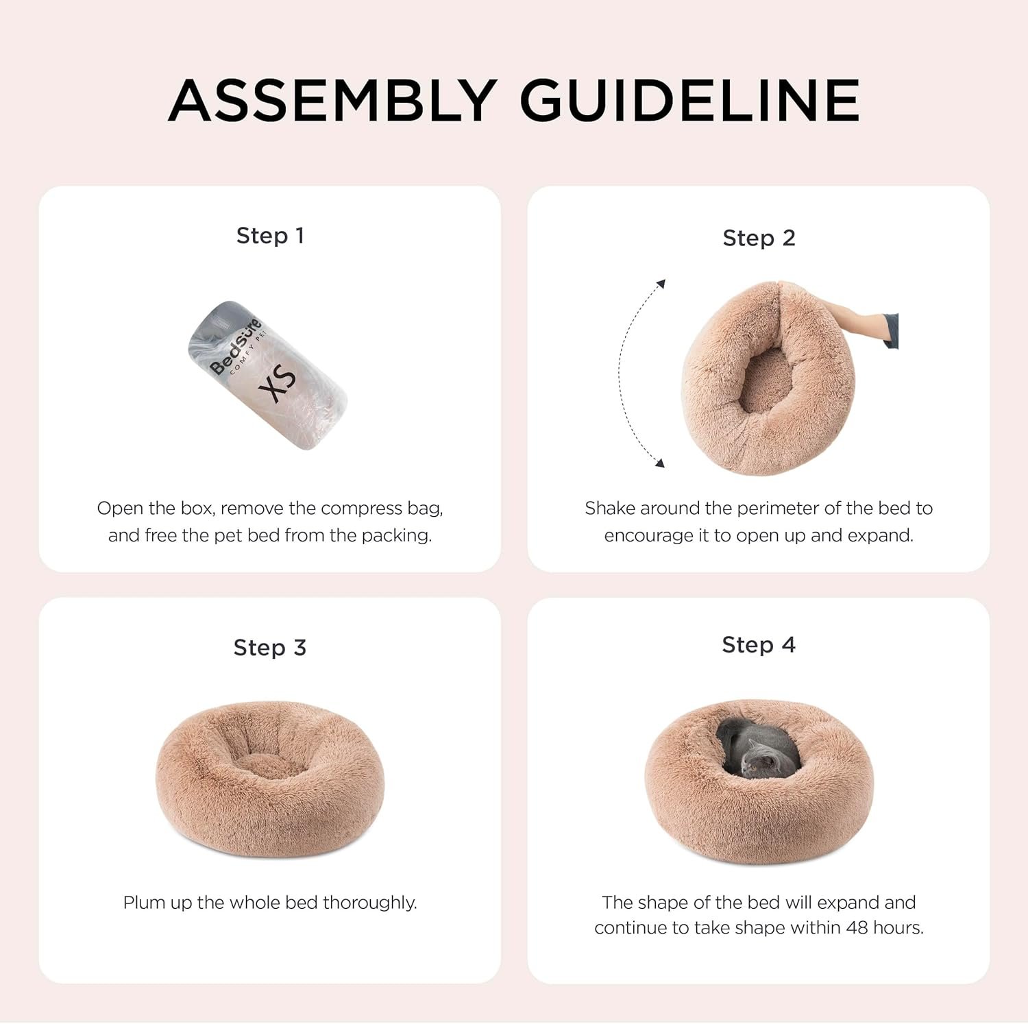 The Bedsure Calming Dog Bed features ultra-soft faux-fur plush fabric and a snug donut design that helps pets feel secure and relaxed. Its raised rim offers head and neck support, while the anti-slip base keeps the bed stable on hard floors. OEKO‑TEX certified materials ensure safety, and easy machine-washability makes it practical for regular cleaning.