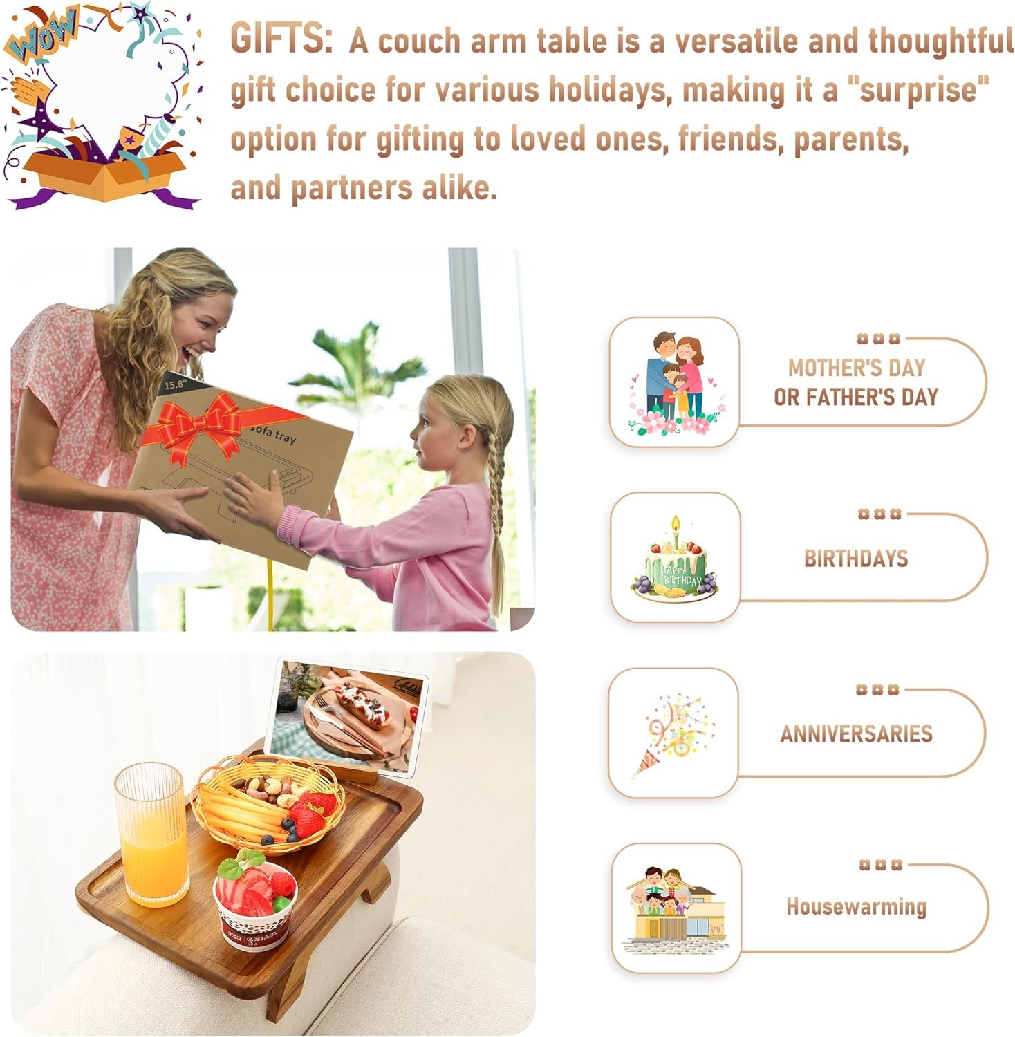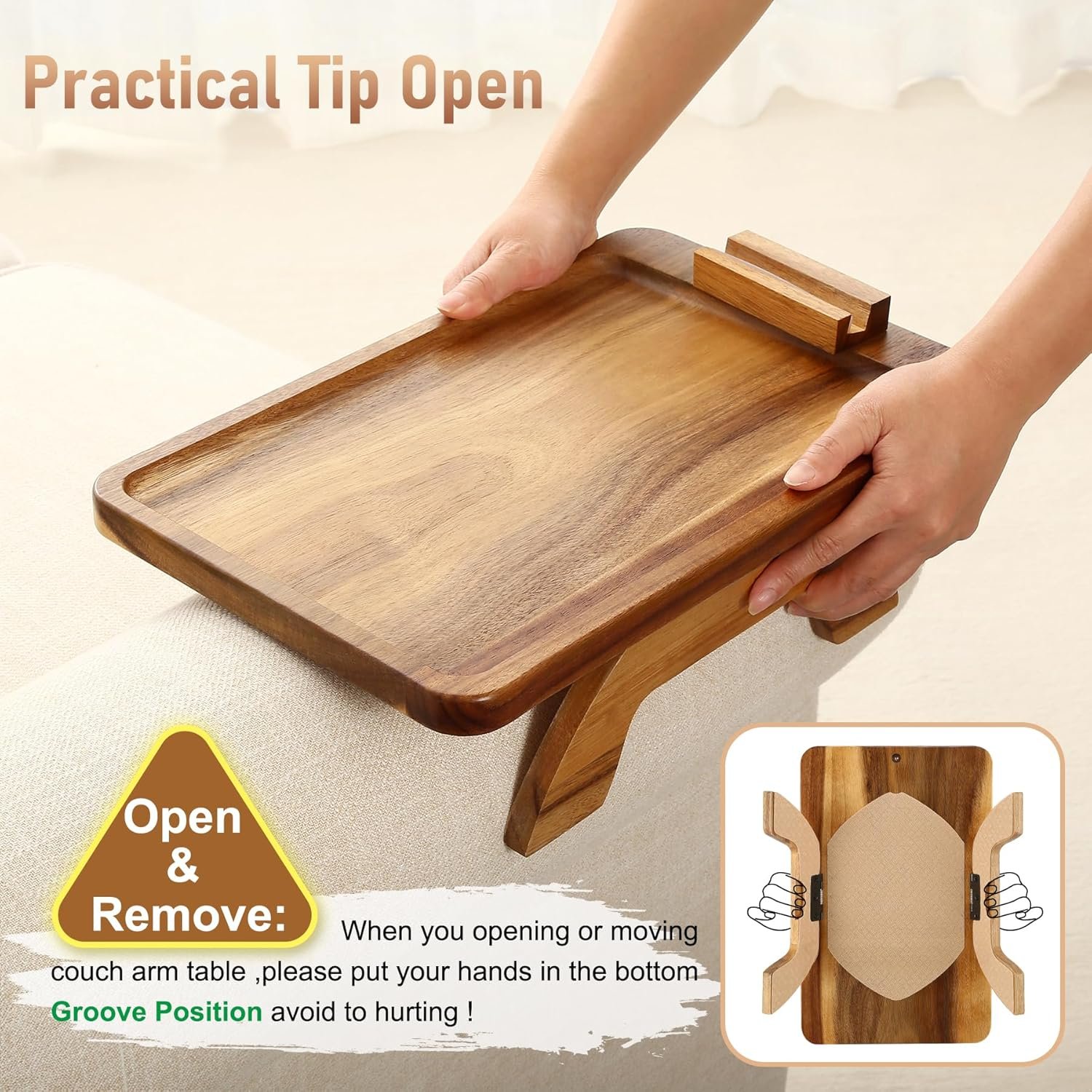 SINWANT Bamboo Sofa Armrest Tray Table