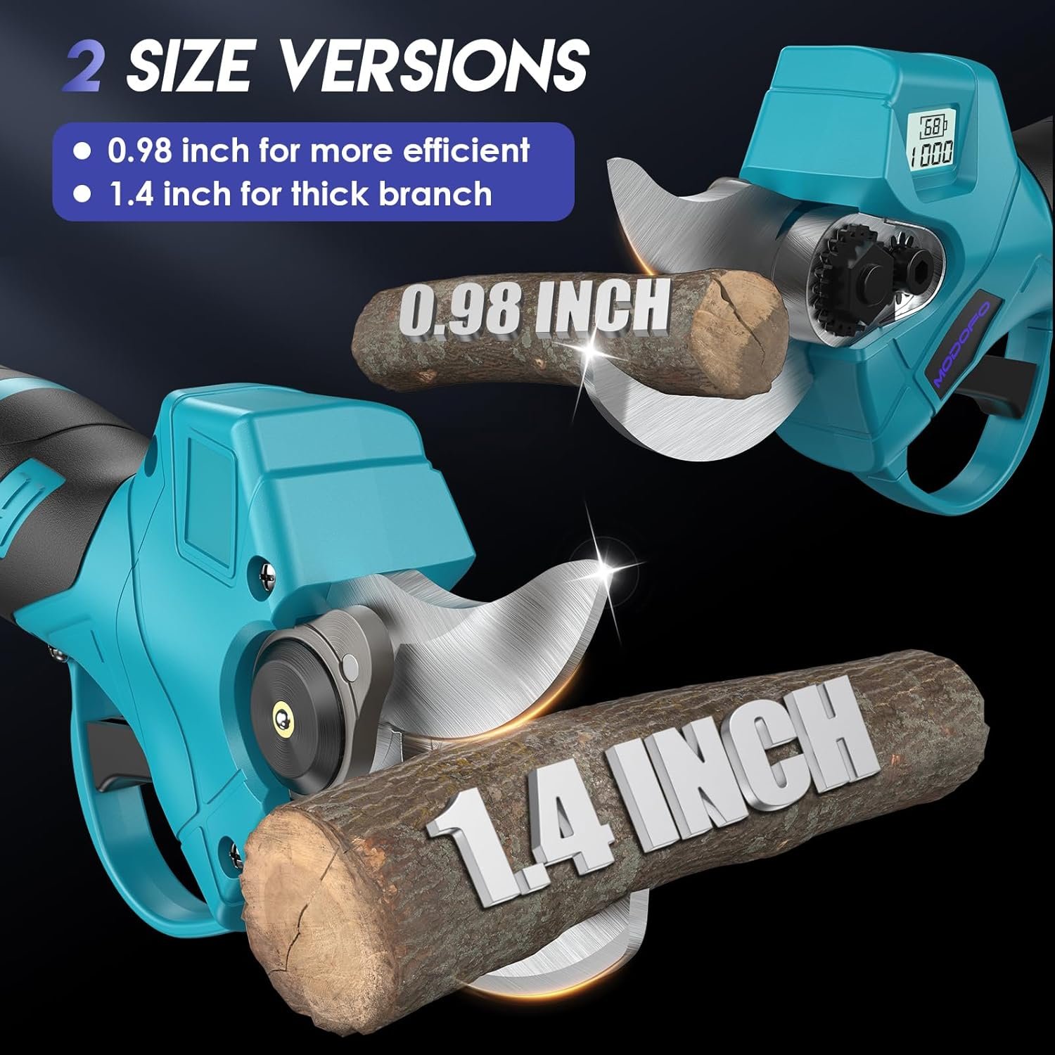 Powered by a 450 W brushless motor, these cordless pruning shears deliver high-performance cuts with precision and speed. The 1.4″ adjustable SK5 steel blades let you tackle branches ranging from 0.98″ to 1.4″, while the dual 2000 mAh rechargeable batteries offer extended runtime of up to 4 hours. An intuitive LCD display shows real-time battery level and cut count, making this tool perfect for garden maintenance, pruning tasks, and orchard work — check it out to upgrade your gardening arsenal.